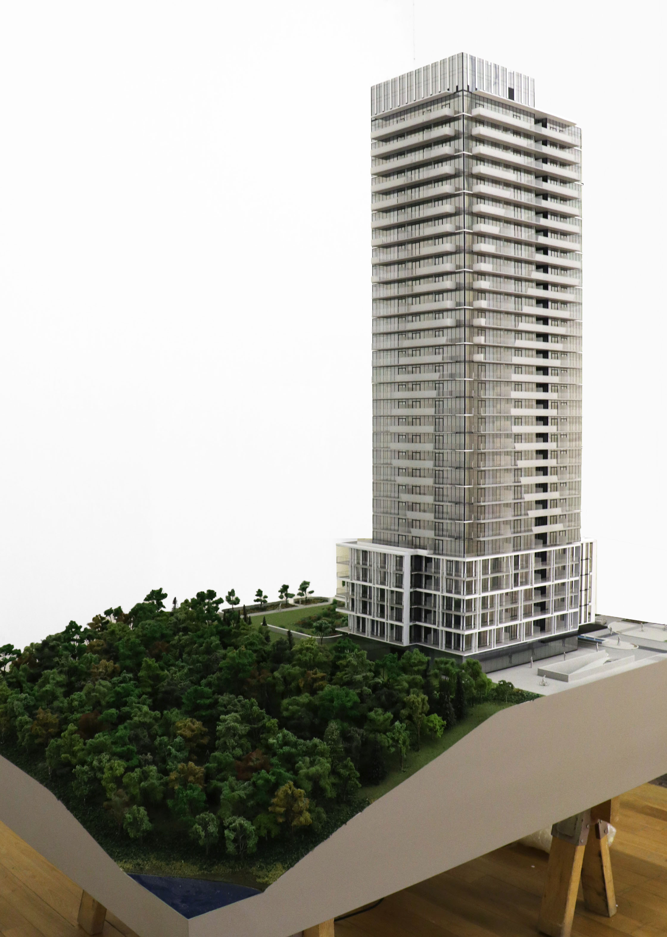 Deliverables included highly detailed and accurate representation of materials such as frosted balcony railings and white aluminum cladding. The units were to be individually lit be an LED circuit board and controlled by an iPad for optimal client experience. As a part of the five-tower mixed-use developement, this model was the first to be completed to establish the look and feel of the entire Central Park development.